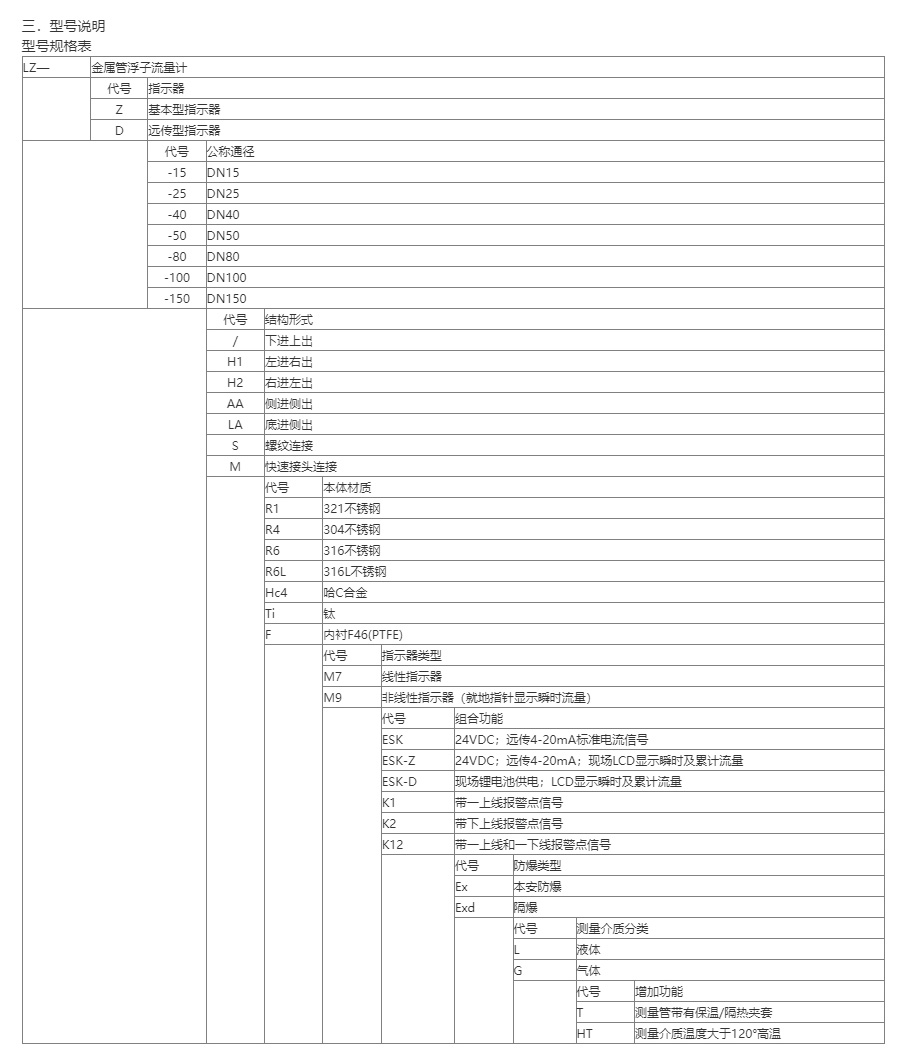4.根据被测流体的测量范围、应用场合等选择合适型号的规格品种。如有特殊要求的流量计,请来公司或来函与销售部联系。